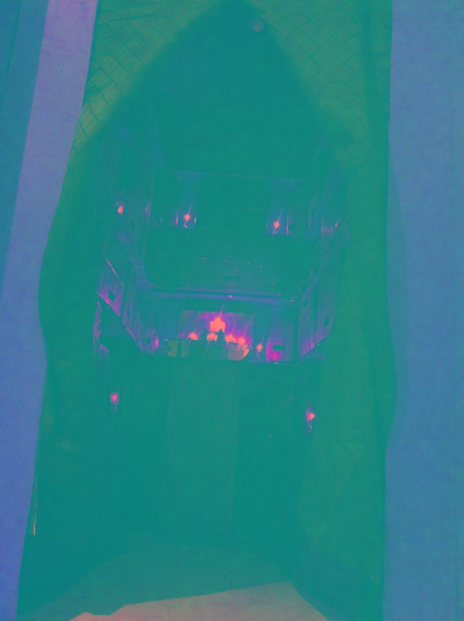 Upon entering the space, viewers are enveloped in an oversized closet, where they peer through shuttered doors to witness a powerful display of images depicting war, tragedy, and influential figures. From either side of the closet emanates a striking contrast of audio. On the left, iconic speeches from figures such as Martin Luther King Jr., Adolf Hitler, Winston Churchill, and George W. Bush resonate, each voice a testament to the power of words in shaping history. On the right, an eerie instrumental soundtrack unfolds, enhancing the atmosphere with its haunting melodies.